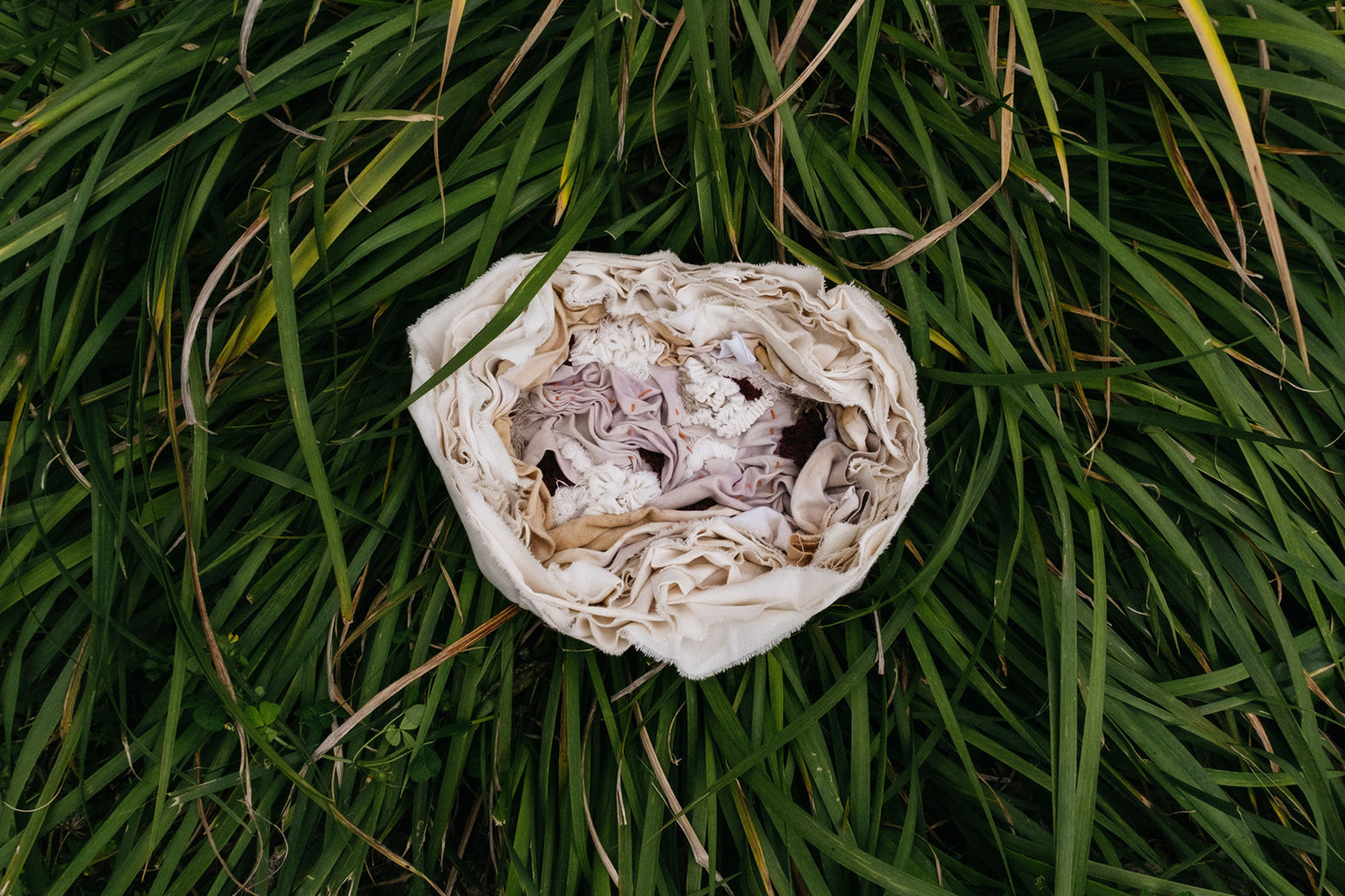 Strati di tessuto cucito, ricamato ed elaborato a mano.
